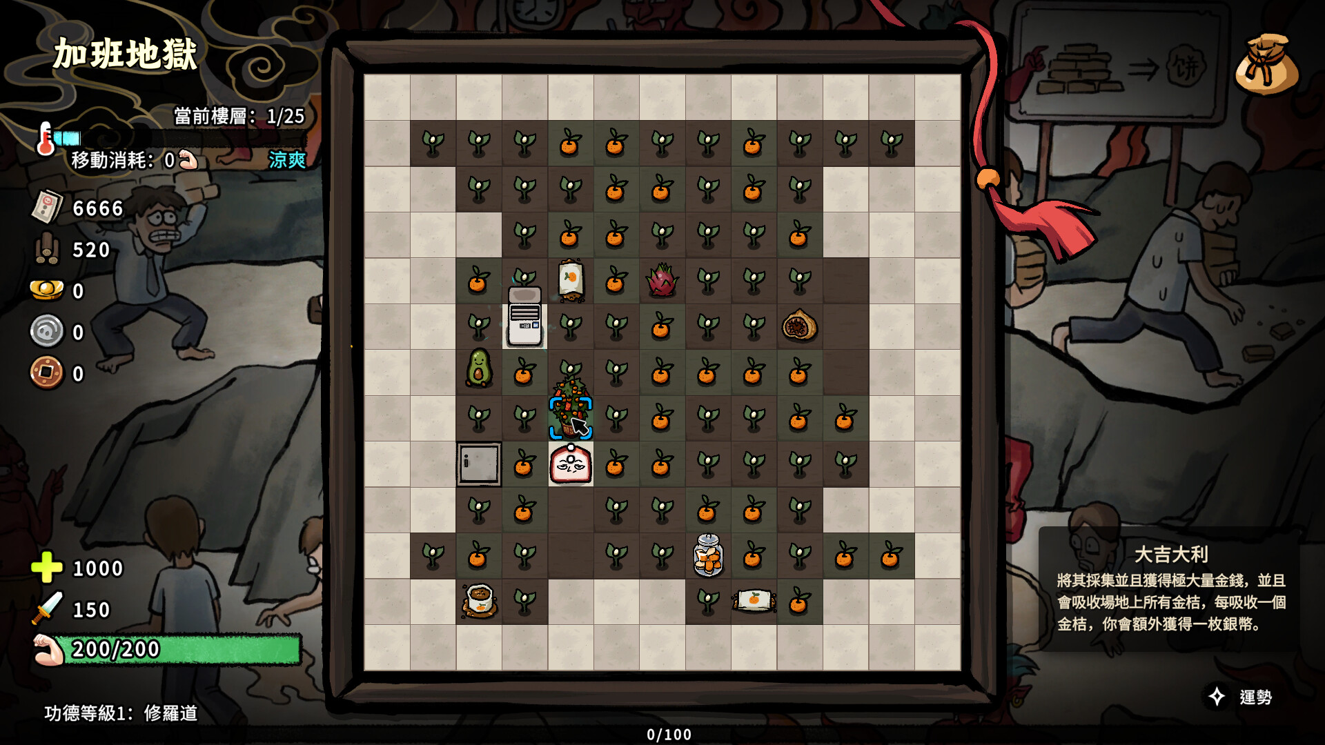 -在層層不同主題的地獄往下探索,收集各種地獄特產和寶物。在因果花園收集各種資源,配合不同果實的效果打出最高效收成。你的功德等級越高,運氣也會越高!