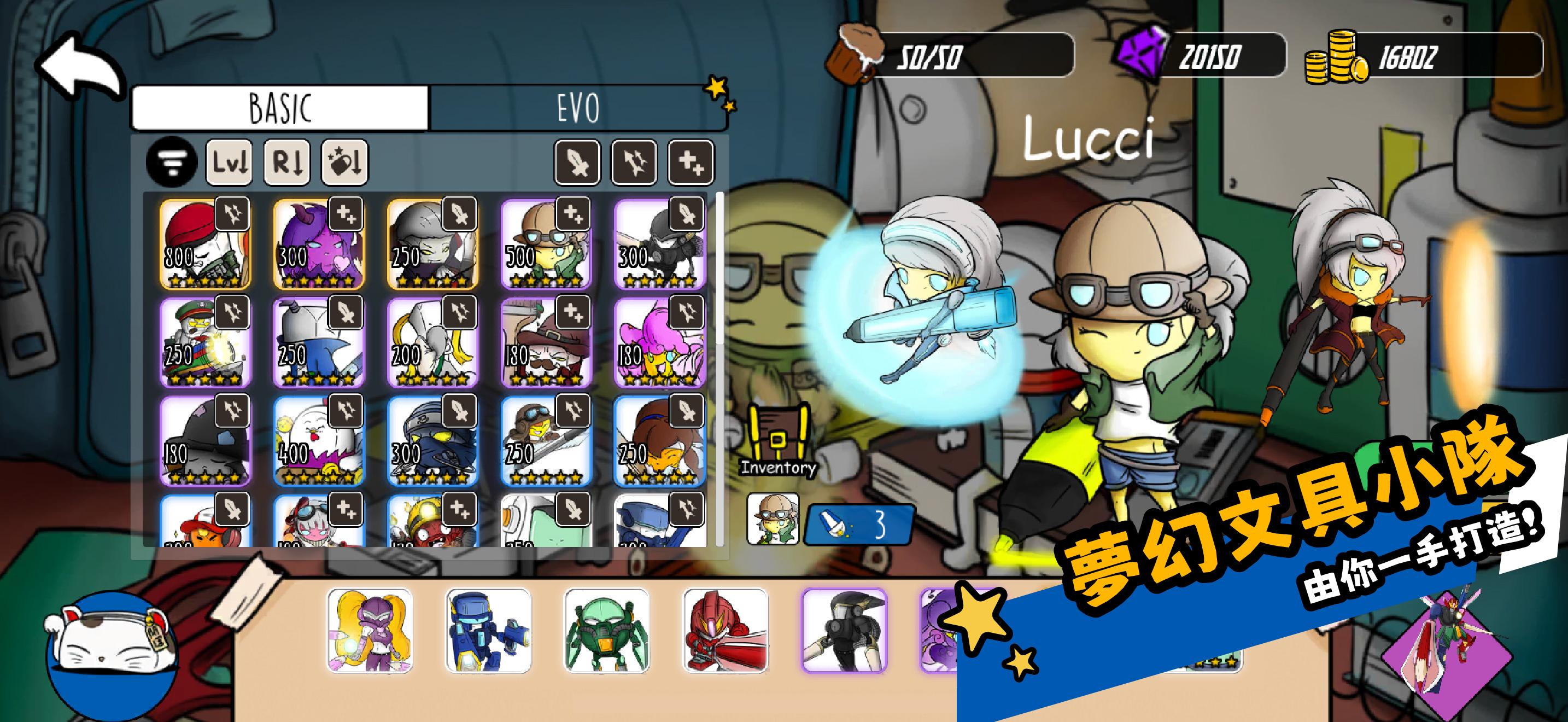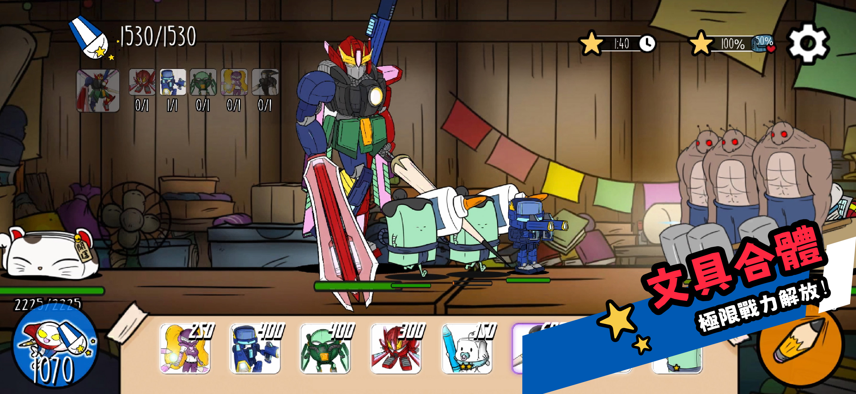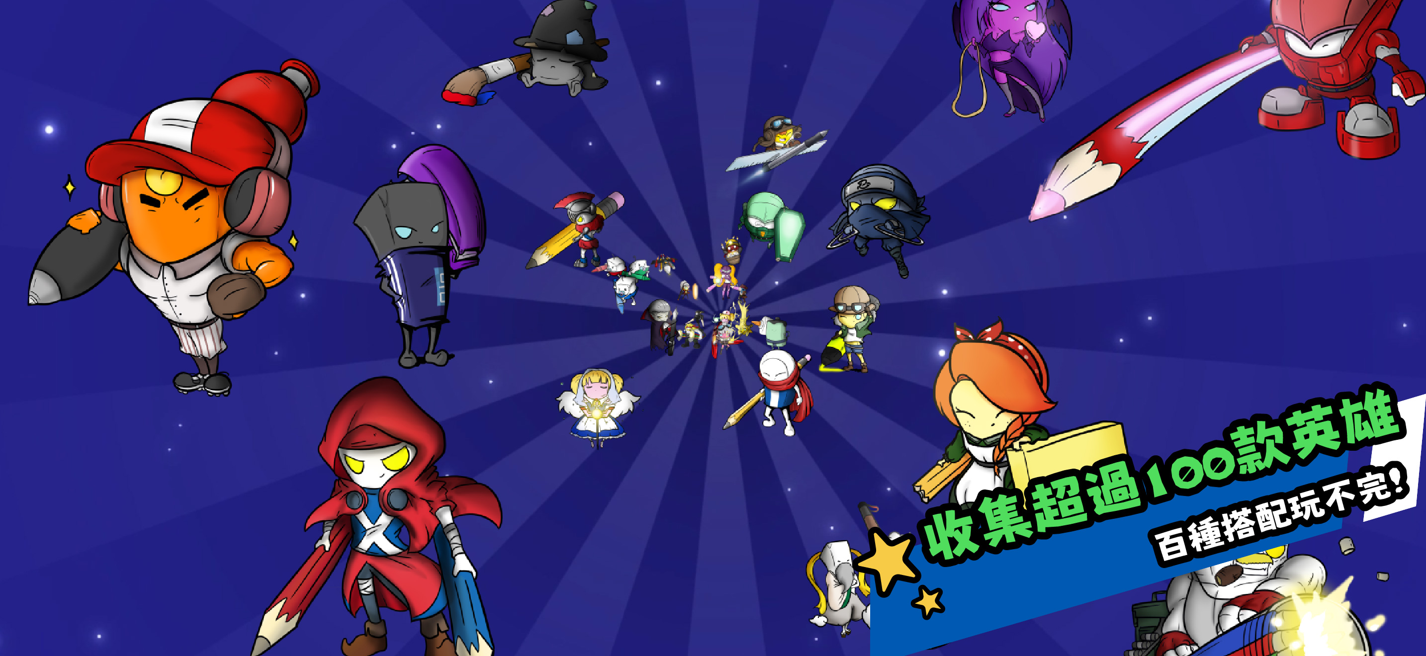 打造你的文具軍團,施展巧妙策略,抵禦一波又一波的敵人。超過100 位獨特英雄等你收集與進化,組合出無限可能!