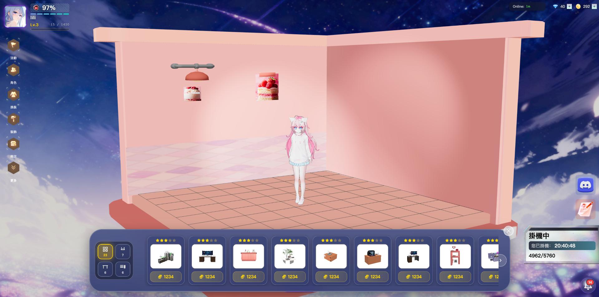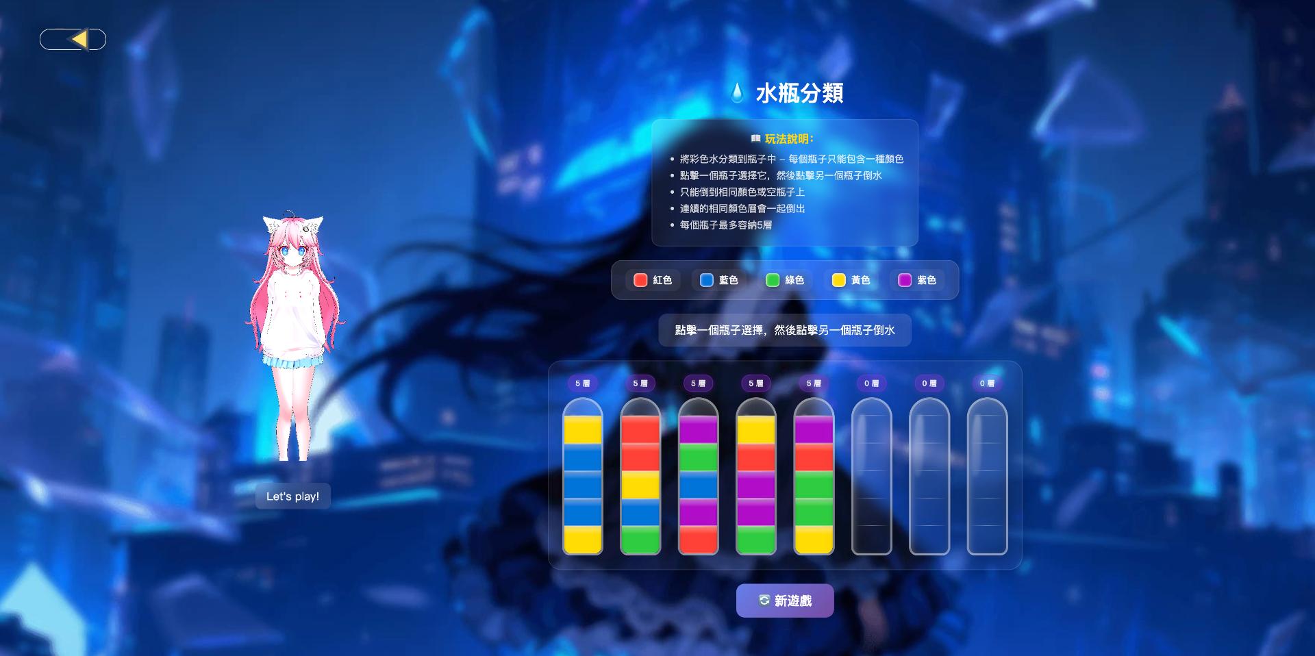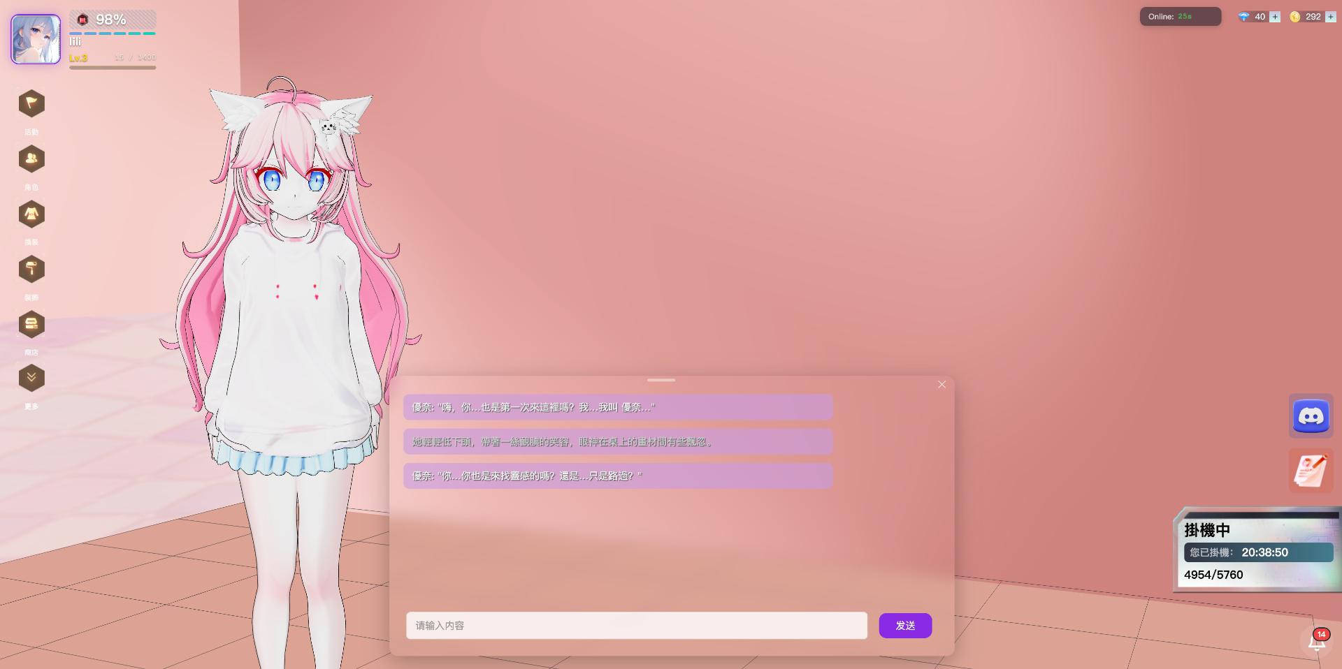二次元風格的 AI 夥伴養成遊戲,聊天互動、換裝佈置,打造專屬的療癒小世界。