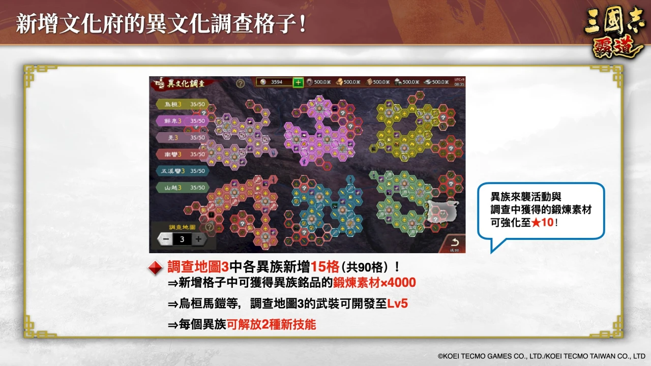 同時,在這次的更新中也在異文化調查追加了新地圖,可開放新技能/異族銘品的鍛煉素材。(異族銘品可以強化至★10)