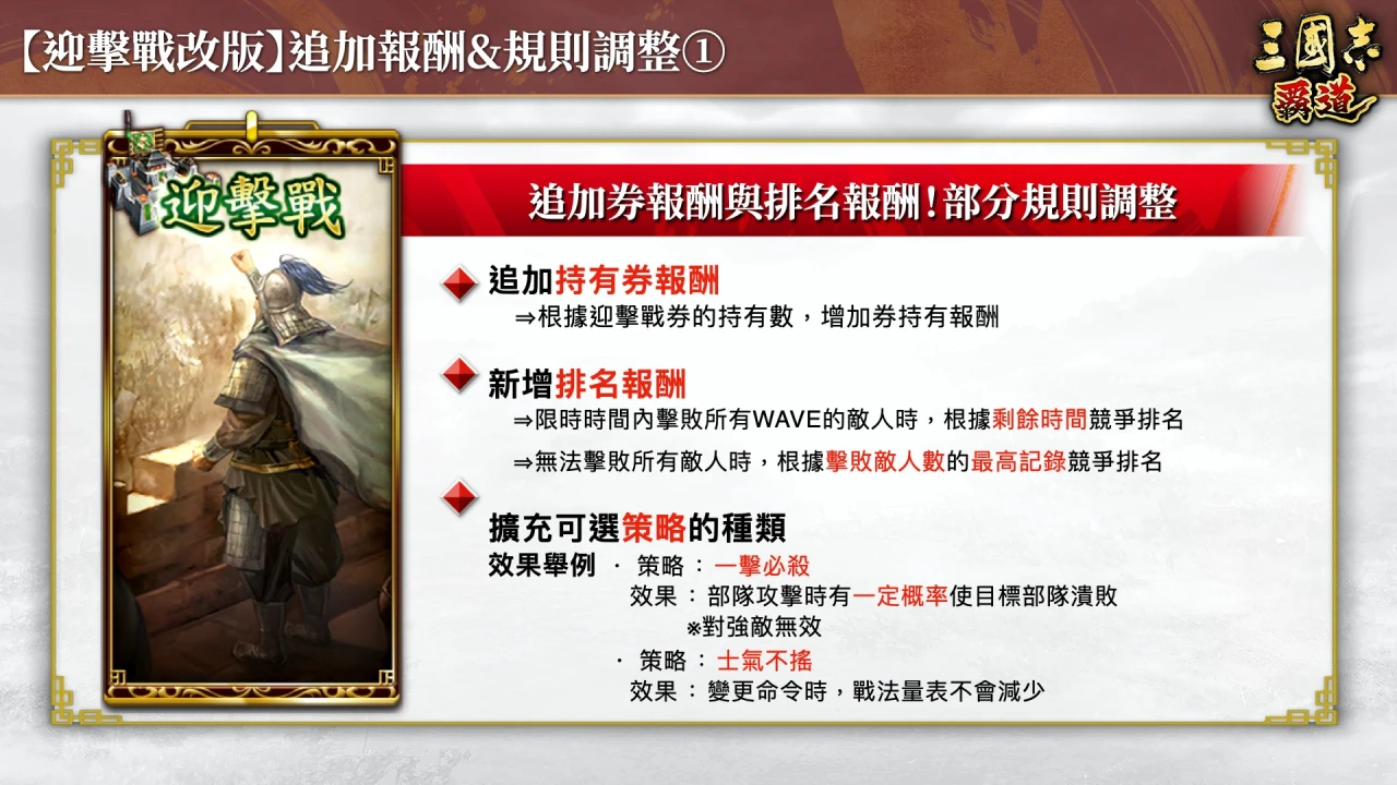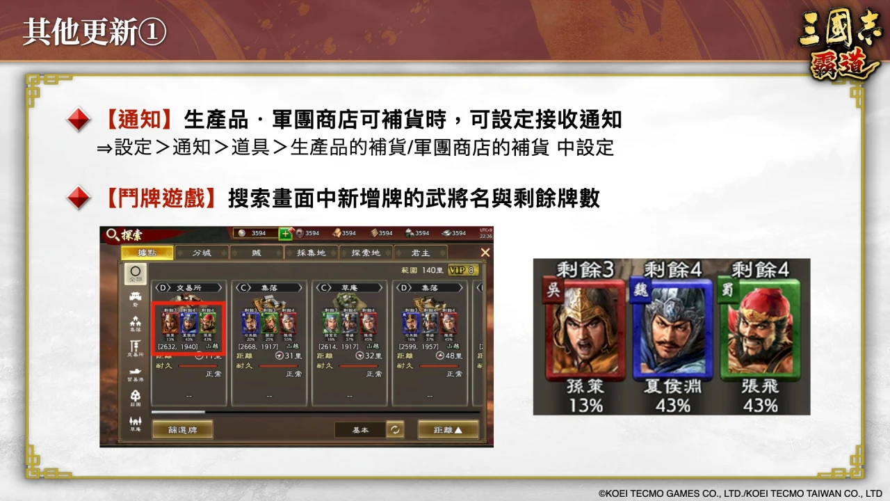 臺灣光榮特庫摩宣布,唯一由三國志系列之本家日本光榮特庫摩重磅推出MMO戰略模擬手機遊戲『三國志 霸道』,目前已完成5月更新,將於此介紹部分內容。