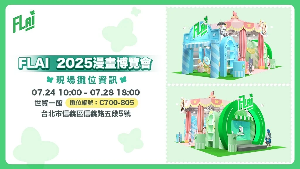 由釜溥多媒體自研自發的生成式 AI 聊天 App《FLAI》,正式於 2025 漫畫博覽會登場,今(24)日也同步曝光展會限定的攤位活動內容,玩家一進入《FLAI》主題攤位,即可感受到滿滿的夏日遊樂園氛圍,除了註冊就送免費暢聊一個月的限定優惠外,作為本次2025年漫畫博覽會唯一出展的生成式AI聊天App品牌,官方團隊以「貓咪與甜點」作為視覺靈感,打造三大療癒系主題體驗空間,結合可愛視覺與多元互動,邀請玩家親身感受《FLAI》帶來的隨心所欲、不受框架限制的創作魅力。