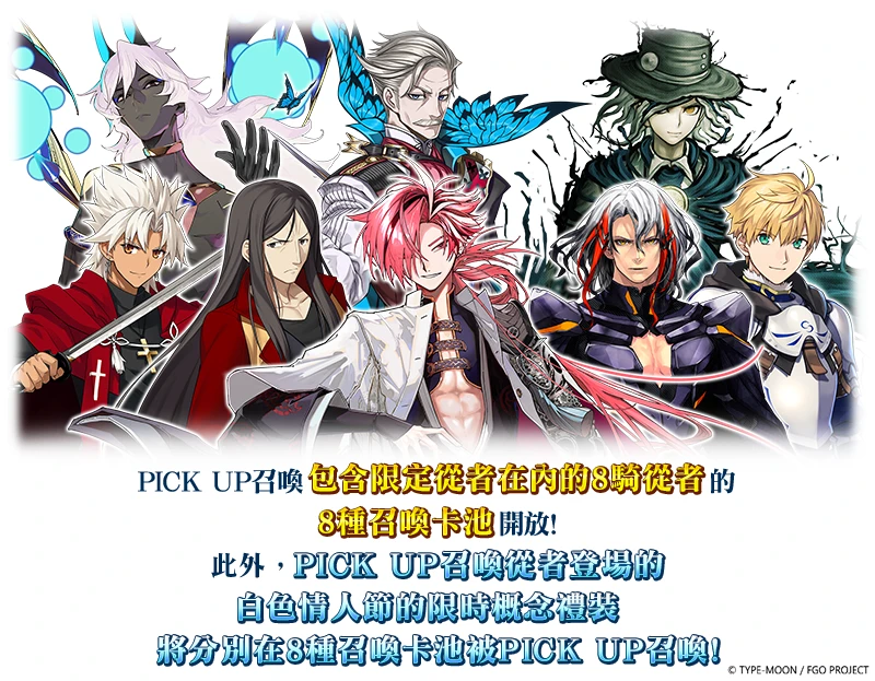 此外,於2026年1月6日(二)16:00至2026年1月27日(二)15:59期間,將舉辦「白色情人節紀念PICK UP召喚」,可召喚過去CBC活動登場的限定從者與其登場時的白色情人節限時概念禮裝。