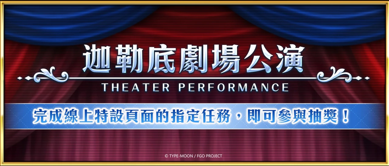 為歡慶「CBC2025 查理曼的Montjoie.騎士道!」的實裝,即將在活動網頁推出線上專屬活動「迦勒底劇場公演」。在這座由御主親自執導的舞臺上,需依照劇本主演特質,選出最適任的出演者,進而獲得掌聲評價。以完美演出為目標,選擇最適任的出演者吧!