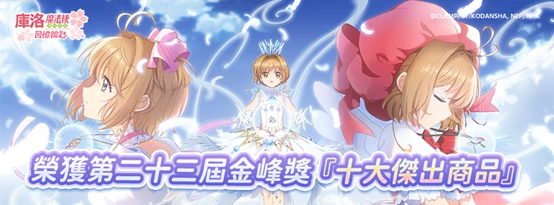 《庫洛魔法使:回憶鑰匙》,於今(25)日榮獲『第二十三屆金峰獎十大傑出商品』殊榮,成為金峰獎創辦以來首款獲獎的手機遊戲,為台灣文創與數位娛樂產業寫下嶄新里程碑
