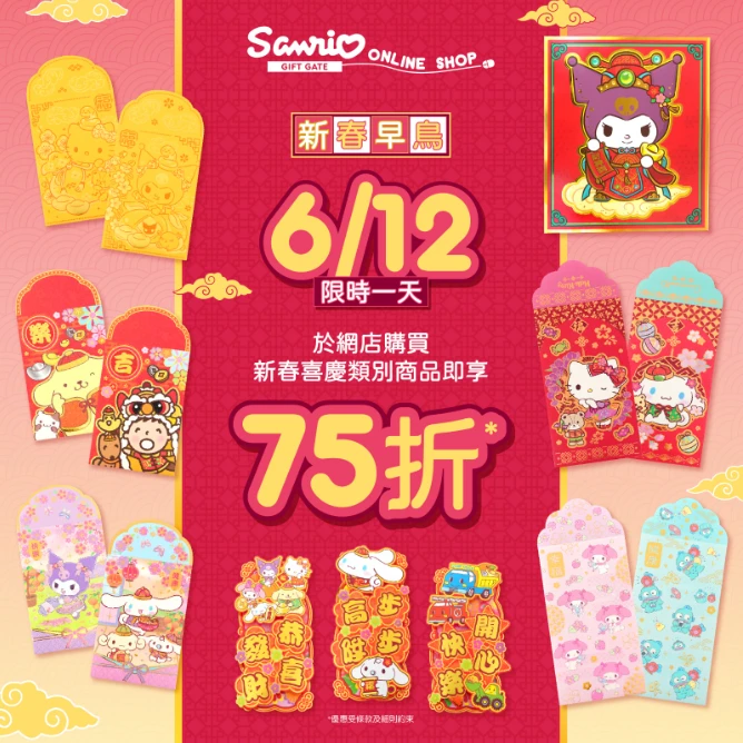 【Sanrio 網店限定 - #早鳥優惠 新年商品75折】#只限12月6日