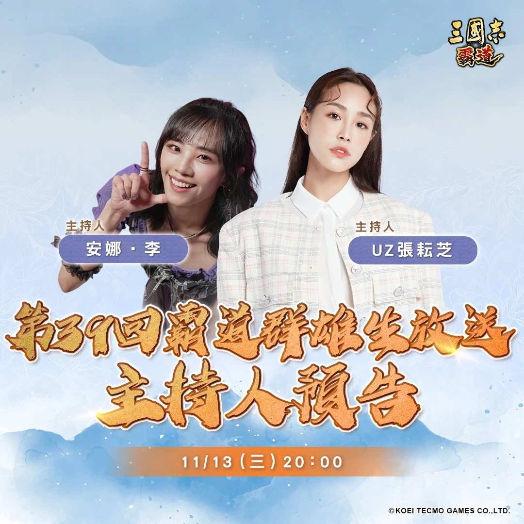 光榮特庫摩出品正宗系列手遊『三國志 霸道』11月13日直播消息預告 宣布最新強檔內容