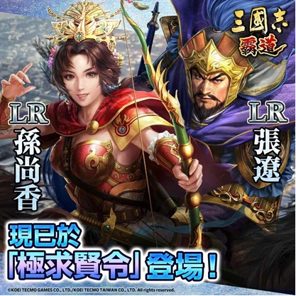 光榮特庫摩出品正宗系列手遊『三國志 霸道』 全新武將LR孫尚香、LR張遼登場!
